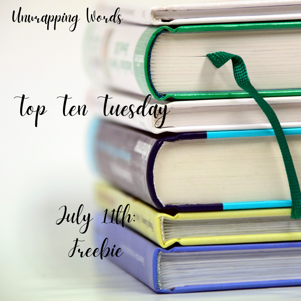 Top Ten Tuesday was created by The Broke and the Bookish in June of 2010 and was moved to That Artsy Reader Girl in January of 2018. It was born of a love of lists, a love of books, and a desire to bring bookish friends together.